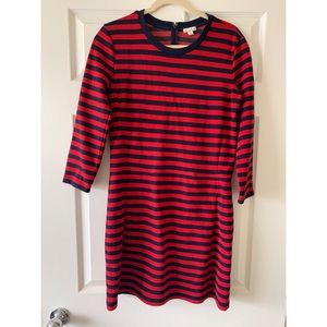 Striped navy and red sweater dress with hidden back zipper. Slightly worn. Great for fall and cooler weather.