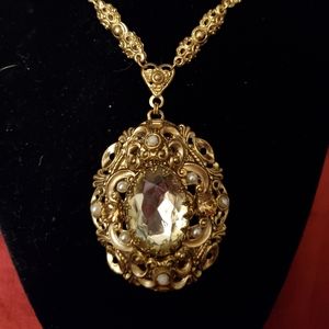 Beautiful QUEEN looking piece. Gold in color and the chain has a lot of accents