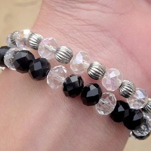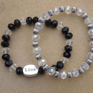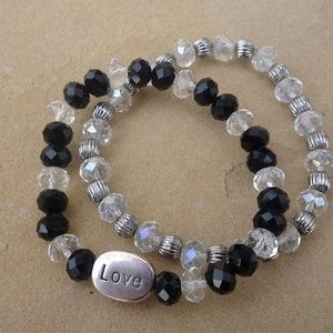 Set of 2 Clear & Black Beaded Love Bracelets