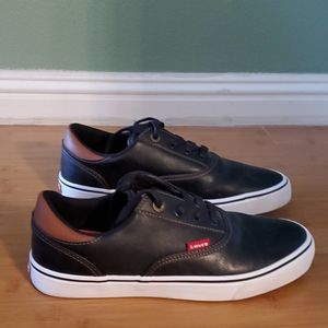 Like-new Men's casual sneakers only worn a couple times. Comfort Levi's soles give extra support and comfort when wearing. Brown accented heal add a nice look to any outfit. Box not included.