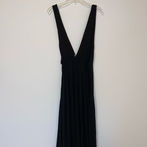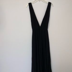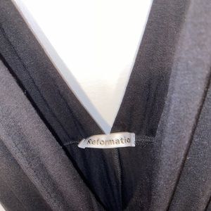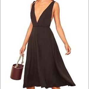 New, without tags, this Reformation dress asks the question: How low can you go? This is an open back, midi length dress with a deep v neckline, low armholes and pockets.