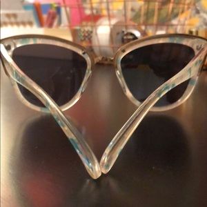 Free People super cool sunglasses. Blue w pink pearlized frames w mirrored blue lenses. Gold accents. Oversized cateye style. Only worn a couple times. In excellent condition!