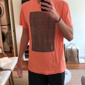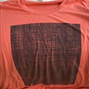 Lululemon orange shirt with blue square in middle