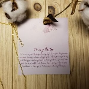 Very Nice To my BESTIE necklace in gold. Necklace has an extension on the clasp. Necklace comes with the beautiful card. Give as a gift or just because. NWT