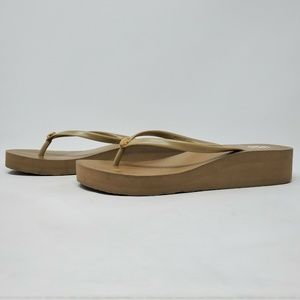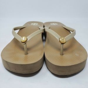 Tory Burch Logo Wedge Platform Flip Flop Beige Gold Size 9. Msrp $68