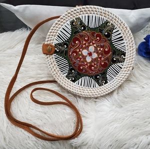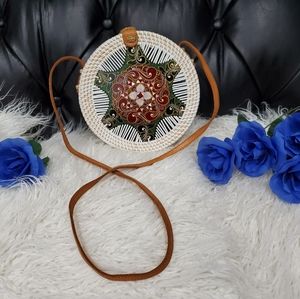 🔥🔥NWT Med Size Round Handwoven Rattan Wht Bag