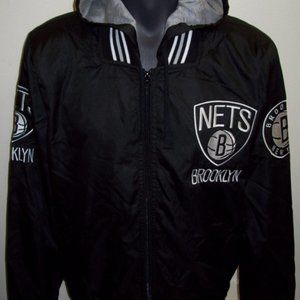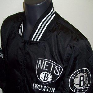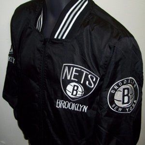 Size Medium, Large, XL: NBA BROOKLYN NETS Rip Stop Nylon Full Zip Jacket. This is a Spring Lighter weight jacket. The jacket has a nylon outer shell and the inside lining is soft polyester. The Lettering on the Front and NETS Logo is meticulously sewn on. New with tags Measurements SIZED ON THE SMALLER SIDE: Armpit to Armpit " MEDIUM: 23": L: 24.5" XL: 26"