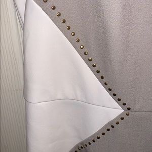 Gold studs around the white faux leather