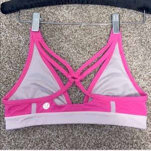amazing condition lululemon sports bra! perfect for working out or lounging. clips in the front, super cute back design, just doesn’t fit anymore willing to negotiate:)