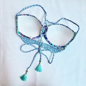 Like-new Paisley T-Back Halter swim top with tassels. Fits like the Fabulous Bra from Victoria’s Secret.