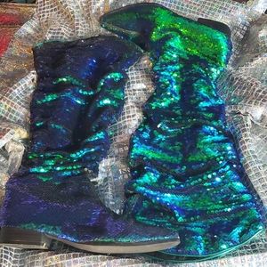 β€HOST PICKβ€ Holographic color changing slouchy western pointy toe knee high boots. Worn a couple of times
