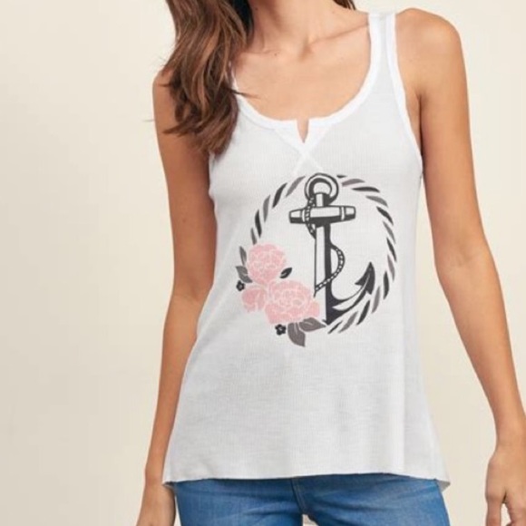 New XS white Abercrombie open back anchor top