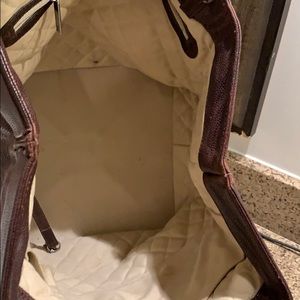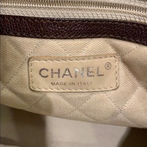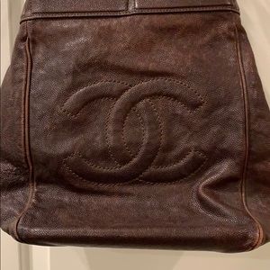 Super cute brown leather Chanel bucket bag type style. Lots of space/ big pockets!! Couldn’t get another pic but closes on top with buckle, as well.