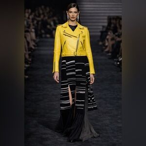 Designed with an asymmetrical front zip closure and an attached waist belt with buckle, it offers both edge and structure. Zippered welt pockets and zippered sleeves complete the iconic moto look, making this jacket a timeless investment piece.