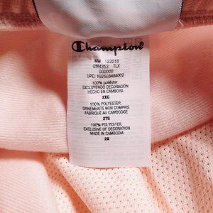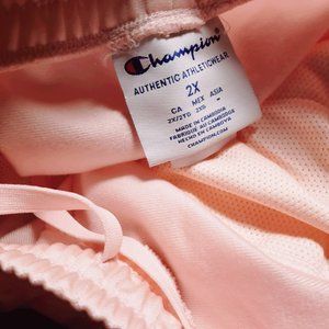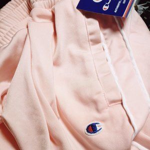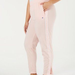 Champion Women's Primer Pink White Striped Authentic Track Pants. Plus Size. Retro, Sporty, New With Tags. Elastic drawstring waist, Pockets, 1/4 Zip Bottom Legs.