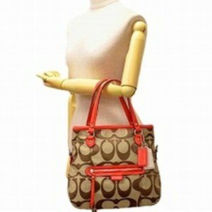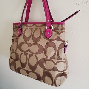Coach Daisy Outline Mia Tote Khaki/Magenta