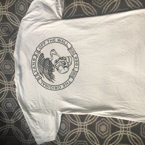 WHITE VANS SHIRT WITH CIRCLE EMBLEM CONTAINING VANS EAGLE HOLDING THE BANNER BETWEEN HIS BEAKS