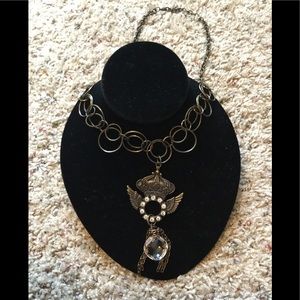 New long crown/wings rhinestone necklace