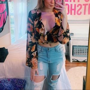 f21 black floral top
