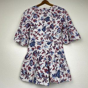 Allover embroidery brings delicate detail to this print Thakoon dress. Thin lattice insets reveal peeks of skin, and bell sleeves create soft volume. Hidden back zip. Lined.