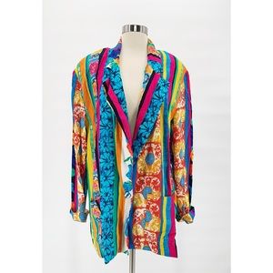 Vtg 1980s Oversized Neon Colorful Blazer Floral 16