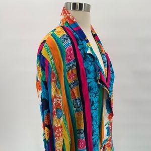 Vtg Womens 1980s Oversized Rayon Blazer Neon Colorful Floral Striped Print Sz 16. Shipped with USPS Priority Mail.