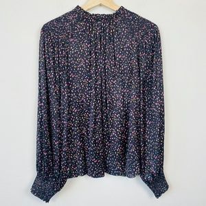 Ulla Johnson Long Sleeve Tiny Floral Tulip Printed Neck Tie Blouse 8 Medium