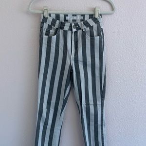 Washed black and white striped jeans from Subdued. High waist skinny jeans with distressed cuffs. Only worn twice! Size 24.