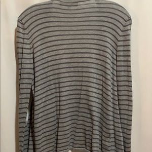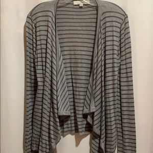 LOFT ASYMMETRICAL SWING OPEN FRONT:: CARDIGAN::SZ M :: gray stripe:: 55% rayon 25% poly 20% cotton:: (pp 21” L 24 SL 26”) measurements are approximate gently worn condition with no visible issues