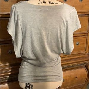 I love this, but it is too tight on me. Batwing arms and elastic cinches on both sides so it can gather nice❤️ Tag says XS but may also fit a Small EUC