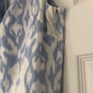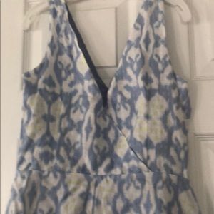 Women’s Gap brand dress size 0P. Beautiful ikat pattern in blue, white and a lemon- lime color. V neck style. Dress has pockets and side zipper. EUC. No rips or stains. Smoke free household