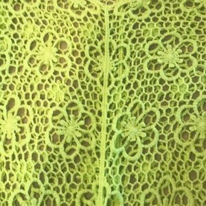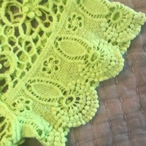 Lime green crocheted top with scalloped detail at sleeves and hem. Comes with matching bracelet. Never worn! From a smoke and pet free home.