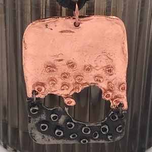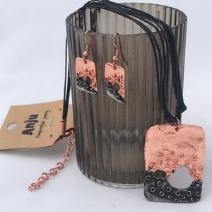 NWT ANJU Handcrafted rectangle rose gold tone and black necklace and jewelry set.