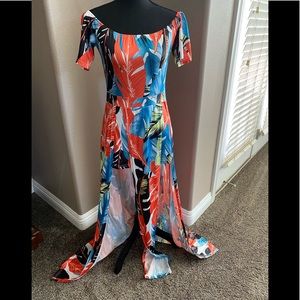 NWOT off the shoulder shorts/dress. I bought this on Amazon but it is too big in the waist. It is a small, measurements in pictures. Great outfit to dress up or down.
