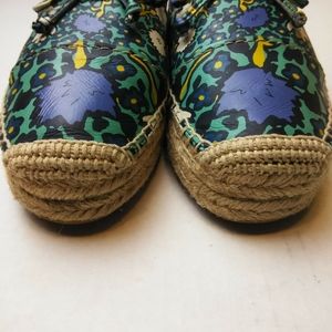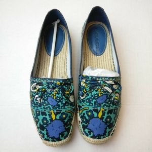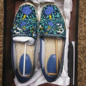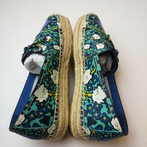 Coach Aqua Blue Multicolored Floral Print Espadrille Slip-on Loafers With Original Box and Dust Bag & Care Booklet No Tears, Holes or Stains...(FIRST COME FIRST SERVE CLOSET SALE)