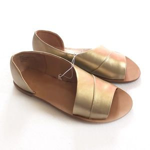NWOT Metallic Gold Asymmetrical Slide Sandals