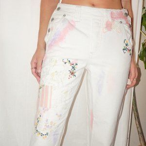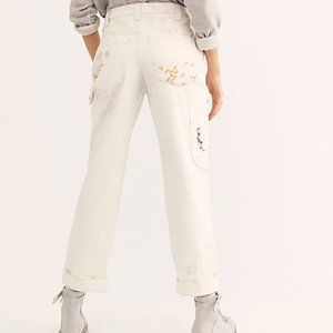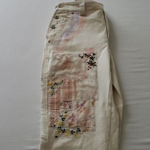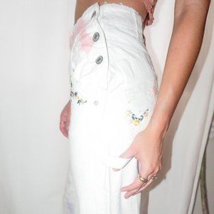 Vintage-inspired jeans from our We The Free collection featuring floral embroidery in a high-rise, slouchy silhouette.