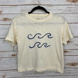 Madewell Cream Cropped Blue Wave Cropped Top