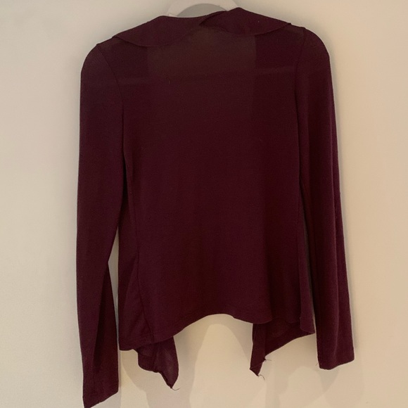 Urban Outfitters Kimch & Blue Cardigan Sweater S Small. Pretty dark mauve purple. Soft knit. Ruffle detail. No flaws. Worn a handful of times. Smoke free home.