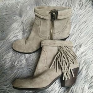 Sam Edelman tan suede Louie Fringe ankle bootie size 6 excellent condition.