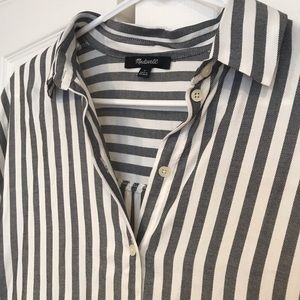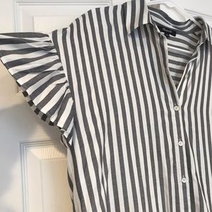 Madewell Striped Shift Dress with Ruffled Sleeves