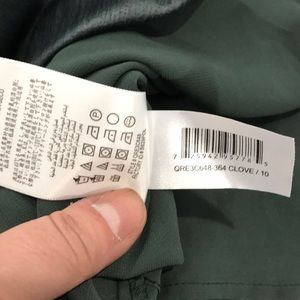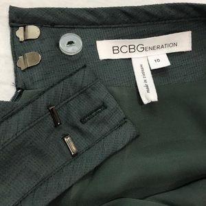BCBGeneration Handkerchief Hem Skirt in Clove color - a hunter greenish color, this is an amazing skirt and I love it, but it runs small - tag says size 10, but it fits more like an 8, waist measures while laying flat 15 inches, it has a light and airy asymmetrical hemline, great for those hot summer days or nights, also has two side pockets, fully lines, zip back closure with slide clasps and a button, great quality, I never wore