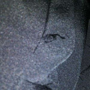 Small hole on the backside of the right sleeve (easy repair).