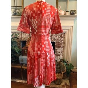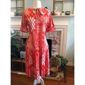 Contempo of California drop waist poly dress. Ties at neck and has pleating at bottom of skirt. Tagged a size 10 but looks to run a bit smaller