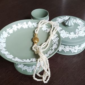 🔥HP🔥VTG Wedgwood Jasperware, grapevine, plate on a stand, light green
