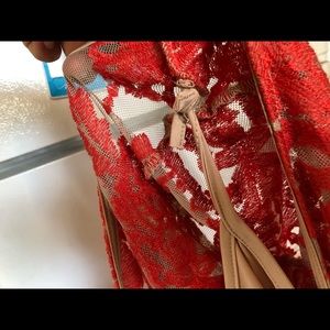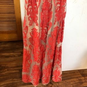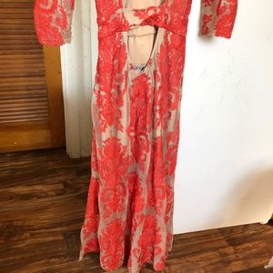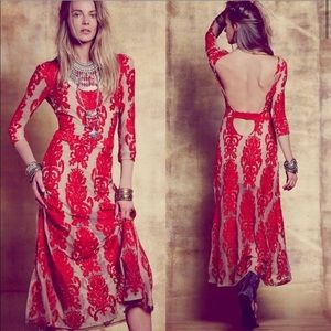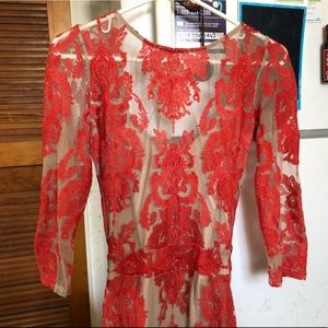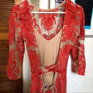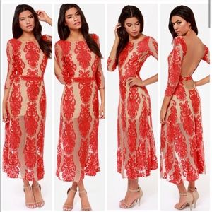 Authentic For Love And Lemons FL&L San Marco Dress Red and Nude Lace Open Back Midi Dress