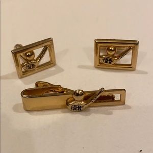 🔴 VINTAGE SPEIDEL 3 PIECE SET OF GOLD TONED CUFFLINKS AND TIE CLIP. THEY HAVE GOLF CLUBS AND BALLS ON FRONT. SPEIDEL ON BACK. PERFECT CONDITION. FROM MY UNCLES ESTATE