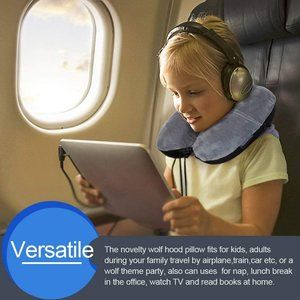 Memory Foam Neck Travel Pillow with Wolf Hood New