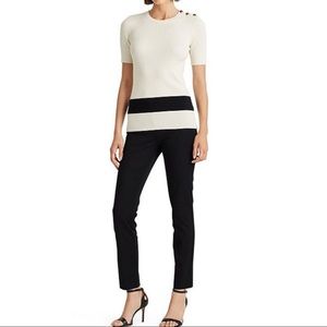 LAUREN Ralph Lauren Colorblock Cotton-Blend Button Shoulder Detail Sweater