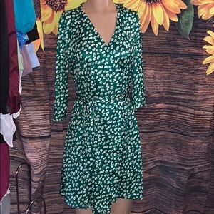 Pretty NWT green and white lily pad design wrap dress. Size small. Stays tied.